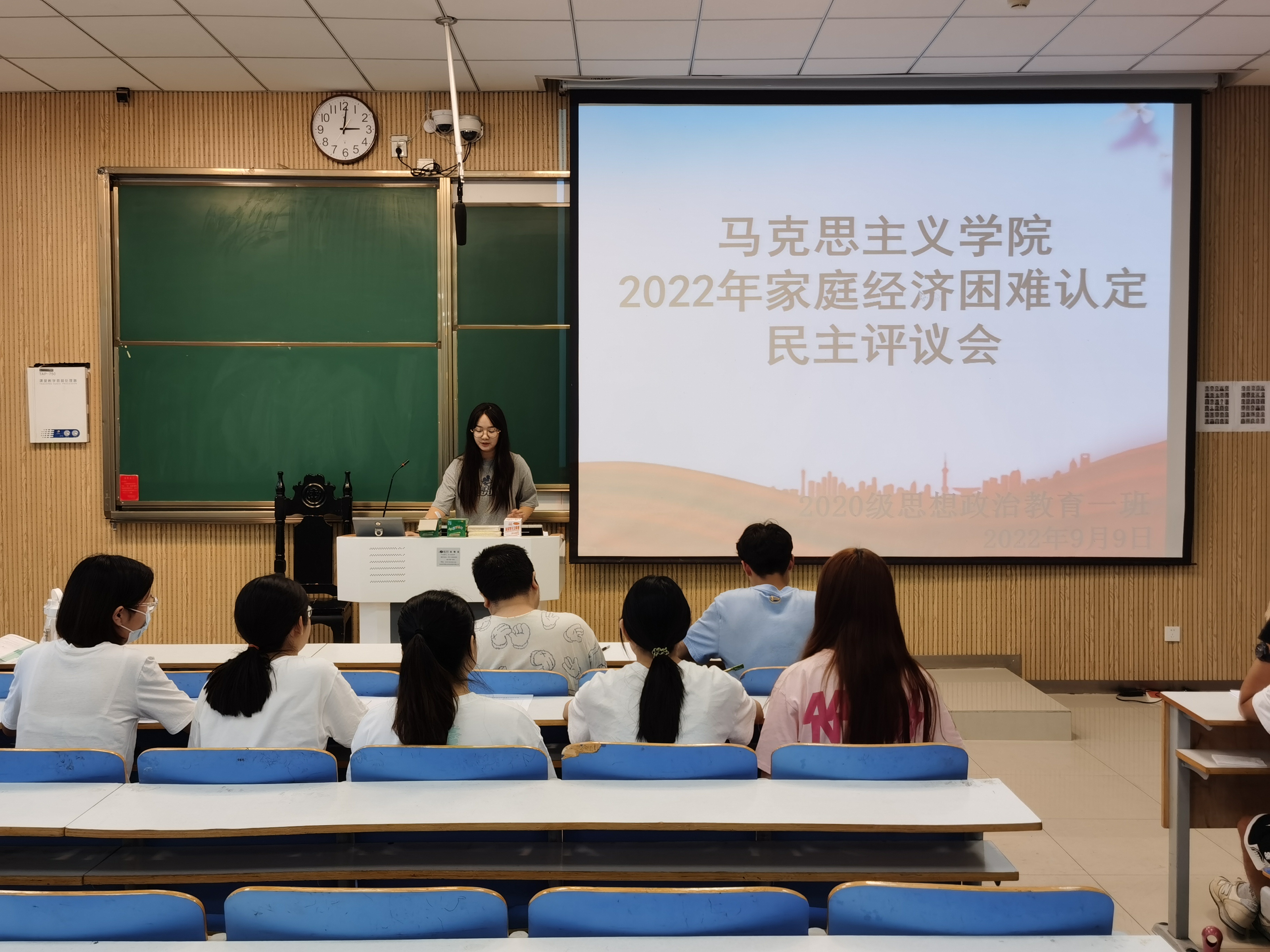 为做好家庭经济困难员工的认定工作,9月9日下午,2026年世界杯官网2020级思想政治教育一班在社科楼515教室召开2022年班级贫困认定民主评议会。评议小组成员、申请人及监督人参与了本次会议。会议由团支书卢茜雨主持。