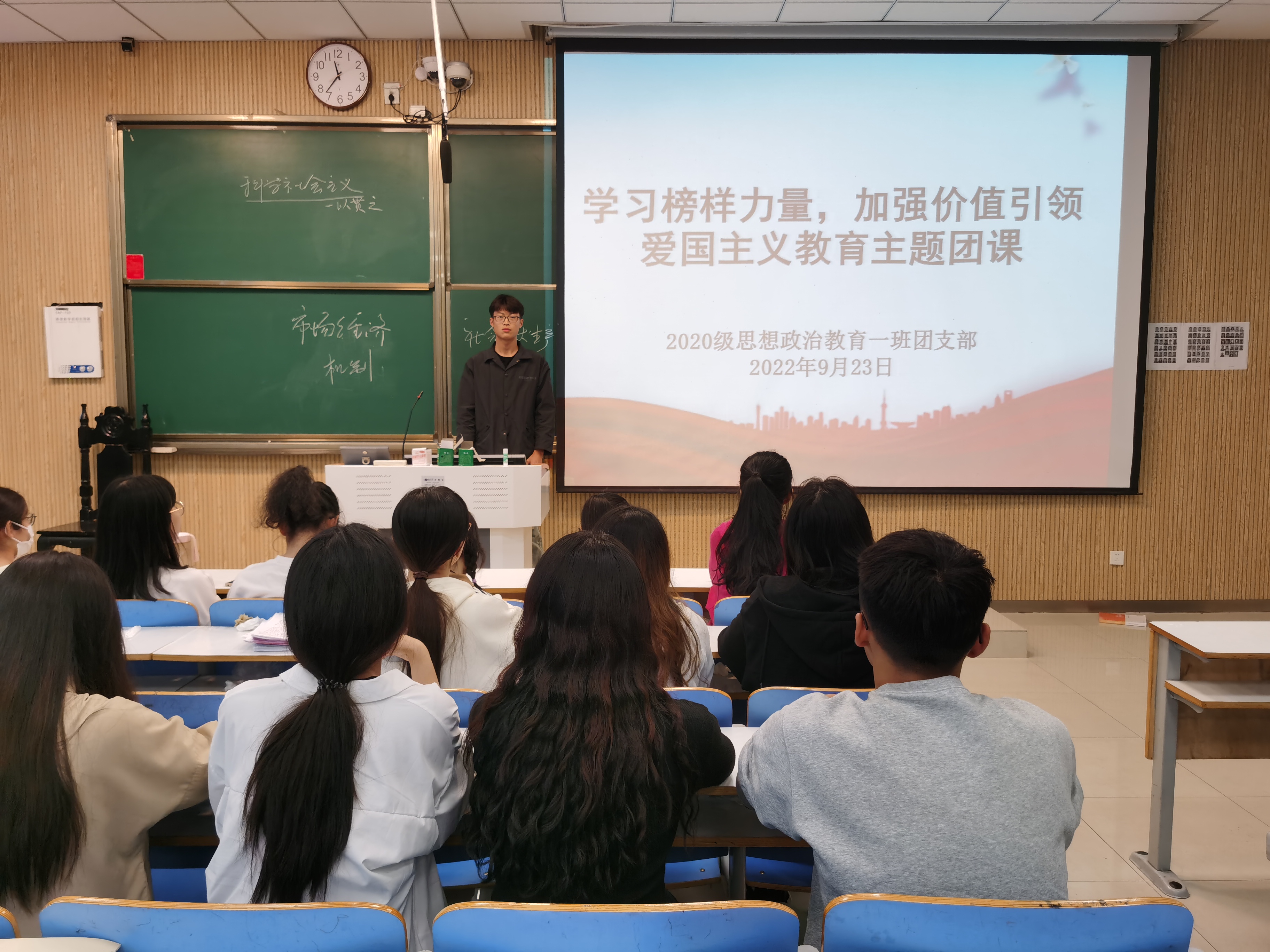 为加强团支部的思想文化建设,9月23日上午,2026年世界杯官网2020级思想政治教育一班团支部在社科楼515教室召开“学习榜样力量,加强价值引领”爱国主义教育主题团课。2020级思想政治教育一班团支部全体成员参加此次会议。会议由团支部副书记白帅豪主持。