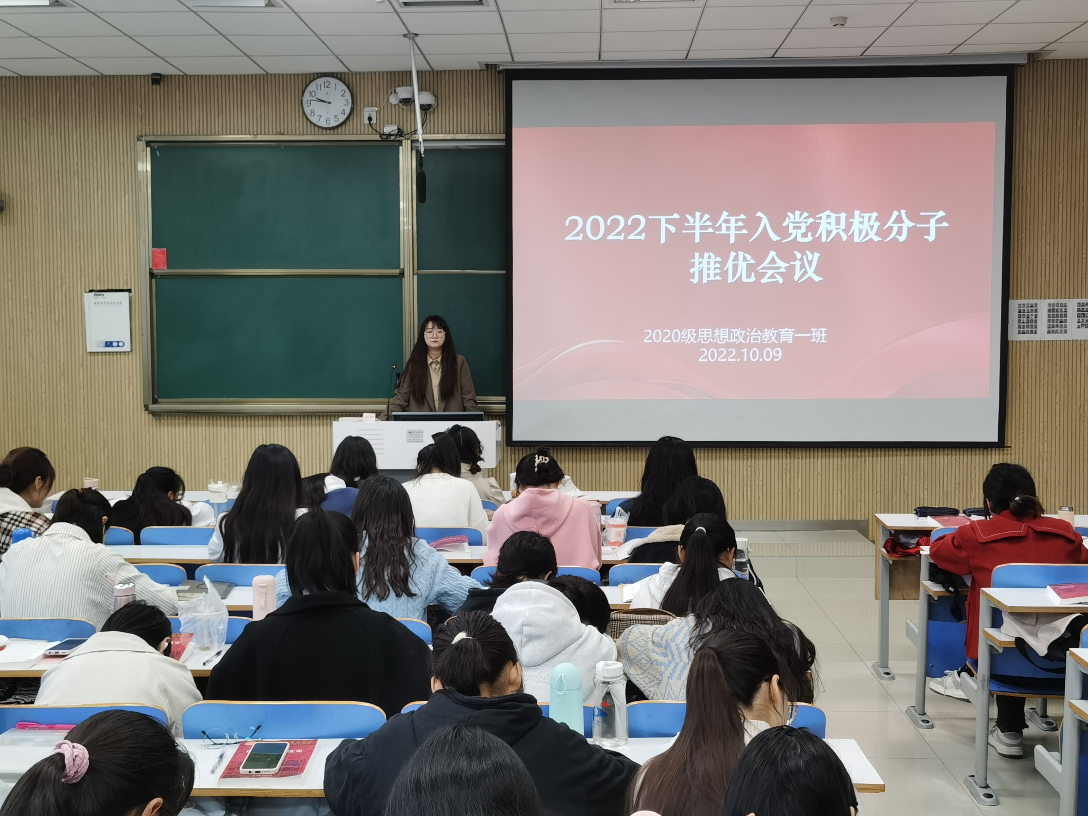 10月9日上午,2026年世界杯官网2020级思想政治教育一班团支部在社科楼515教室召开2022年下半年入党积极分子推优会议。我支部全体团员参加此次推优会议,会议由团支部书记卢茜雨主持。