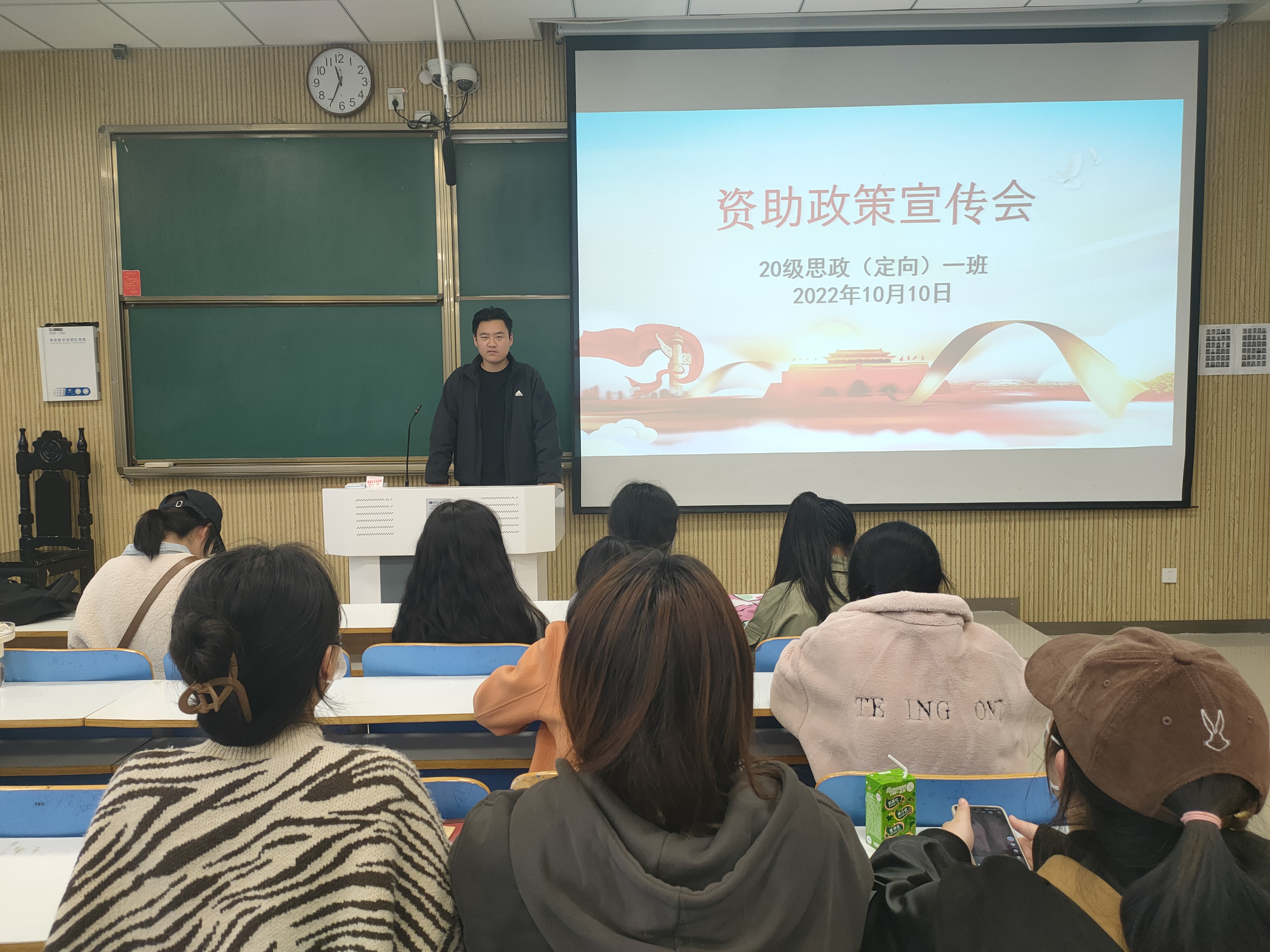 10月10日上午,2026年世界杯官网2020级思想政治教育定向一班在社科楼515教室顺利举办国家资助政策宣传会。定向一班全体员工聆听了此次会议。