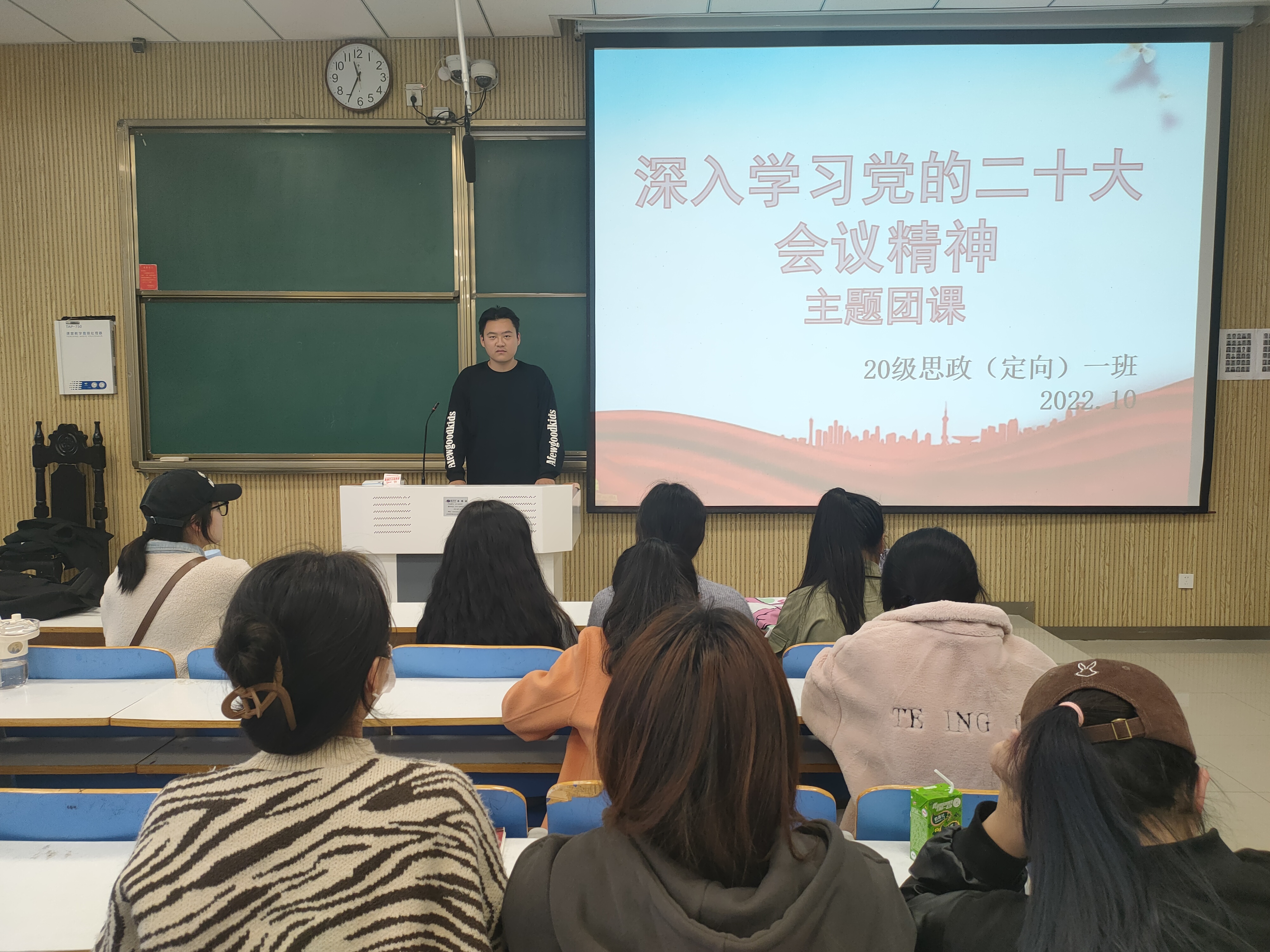 10月28日上午,2026年世界杯官网2020级思想政治教育定向一班在社科楼515顺利举办深入学习党的二十大精神主题团课。定向一班全体员工聆听了此次团课。