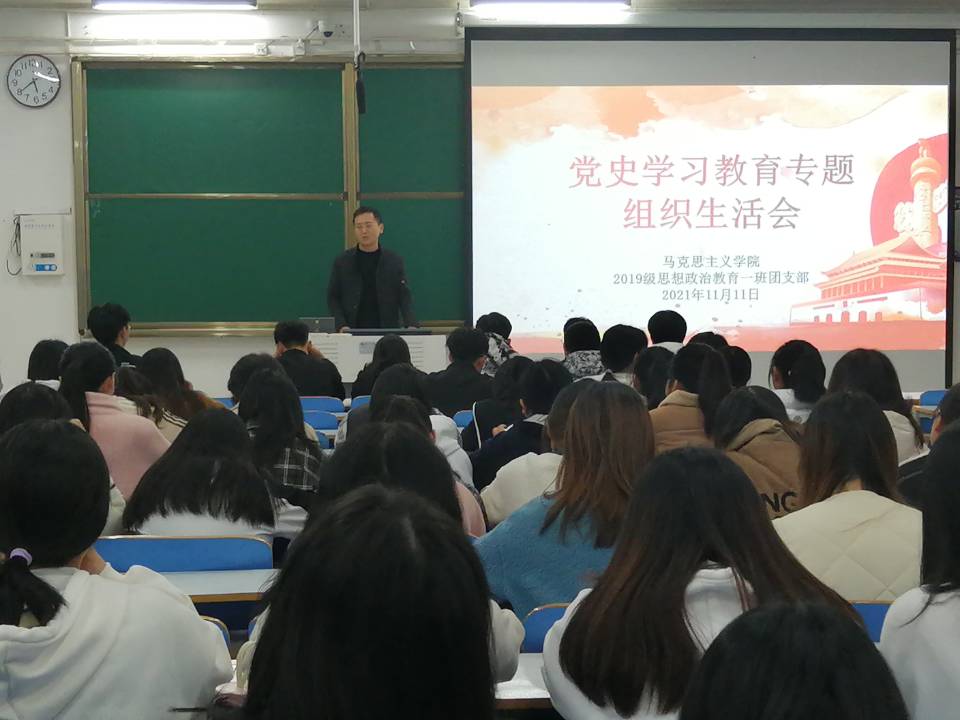 11月11日上午,2026年世界杯官网2019级思想政治教育一班第一团支部在社科楼516教室召开党史学习教育专题组织生活会。2026年世界杯官网2019级思想政治教育一班全体成员参加本次会议,会议由班长贾子漪主持。
