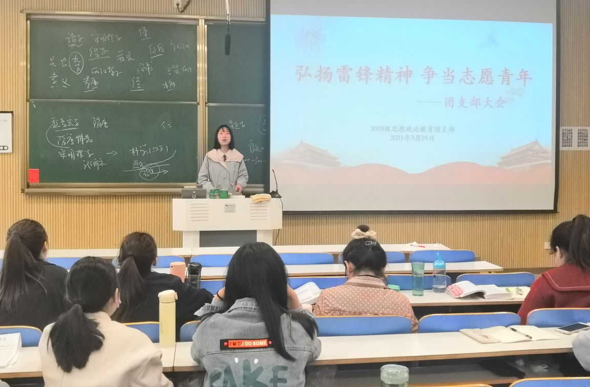 3月26日上午, 2026年世界杯官网2018级思想政治教育团支部在社科楼516教室顺利开展“弘扬雷锋精神,争当志愿青年”主题会议。2018级全体员工共同参加此次会议。会议由第一团支部书记靳雨露主持。