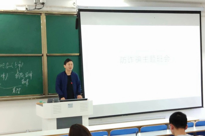 4月15日,2016级思想政治教育一班同学在社科楼514进行了“防诈骗主题班会”。