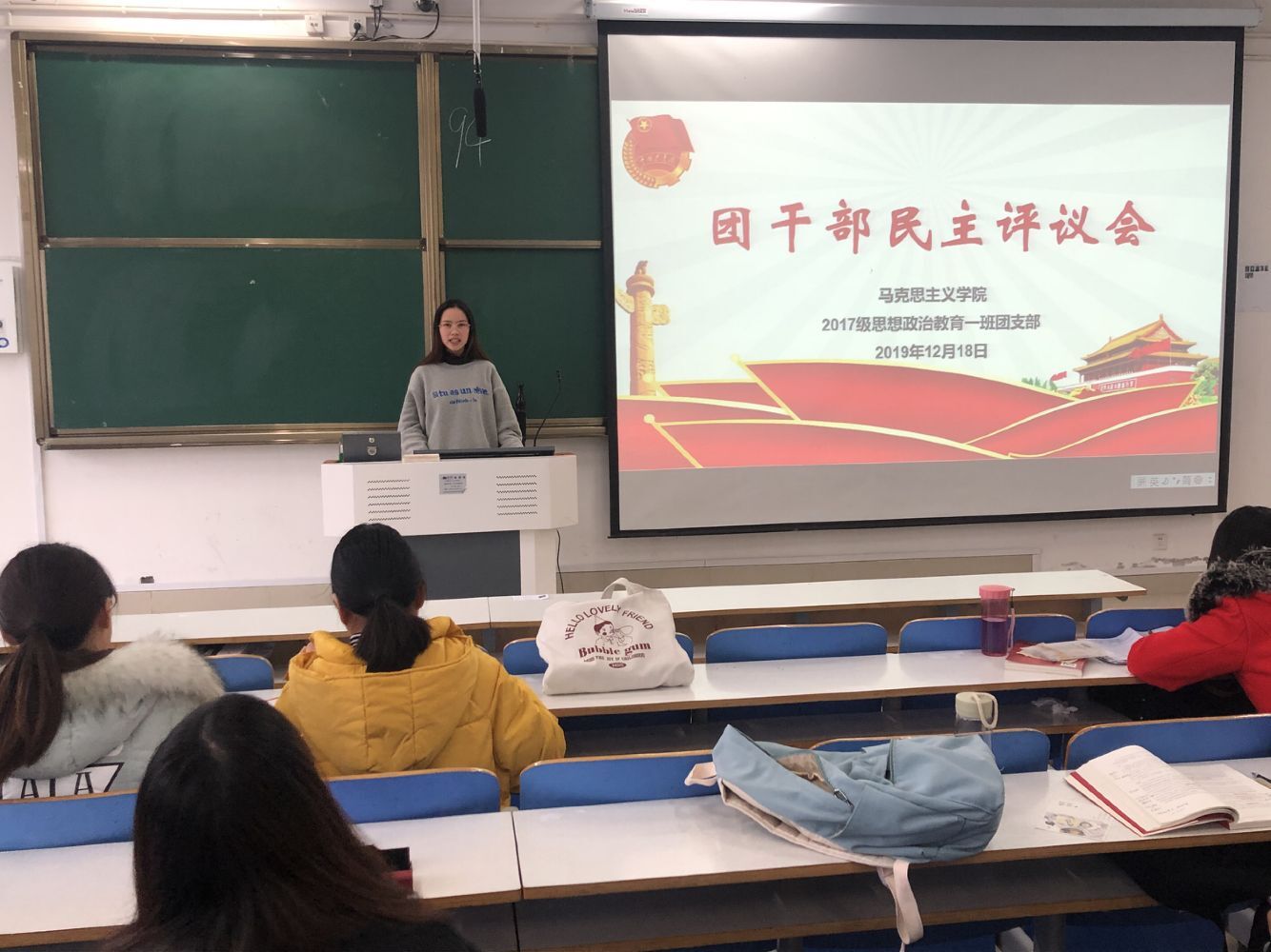 为实现团支部工作的透明化、公开化,进一步调动班团干部的工作积极性和创造性,更好地为员工服务,12月19日上午,2017级思想政治教育一班在社科楼516教室召开本学期团干部民主评议会。本次会议由团支书谢文静主持,全体同学共同参与。