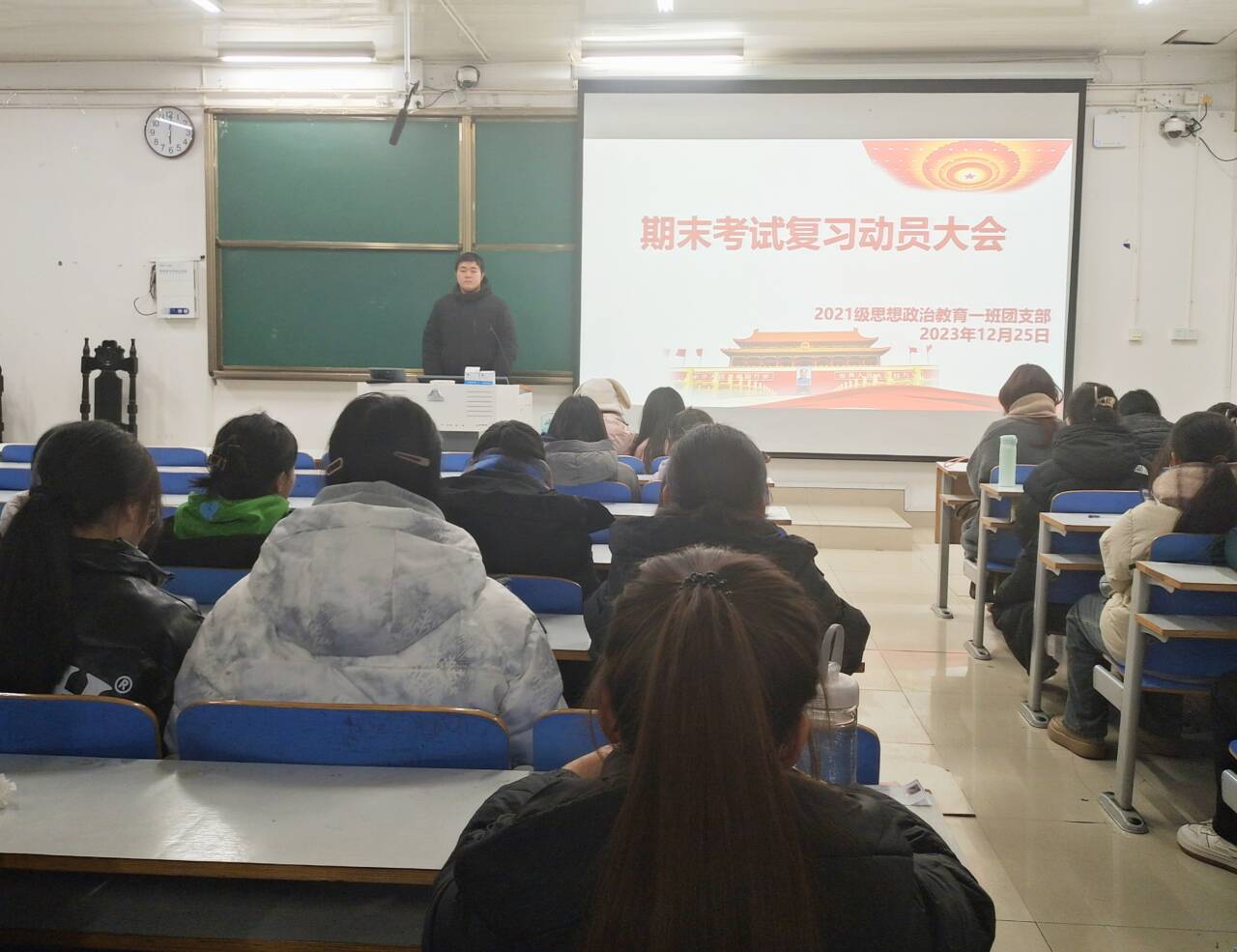 为加强学风建设,推进员工期末考试复习工作的开展,12月25日下午,2026年世界杯官网2021级思想政治教育一班在社科楼514教室召开“期末考试复习动员大会”。2021级思想政治教育一班全体成员参加本次会议。会议由团支书戴翰林主持。