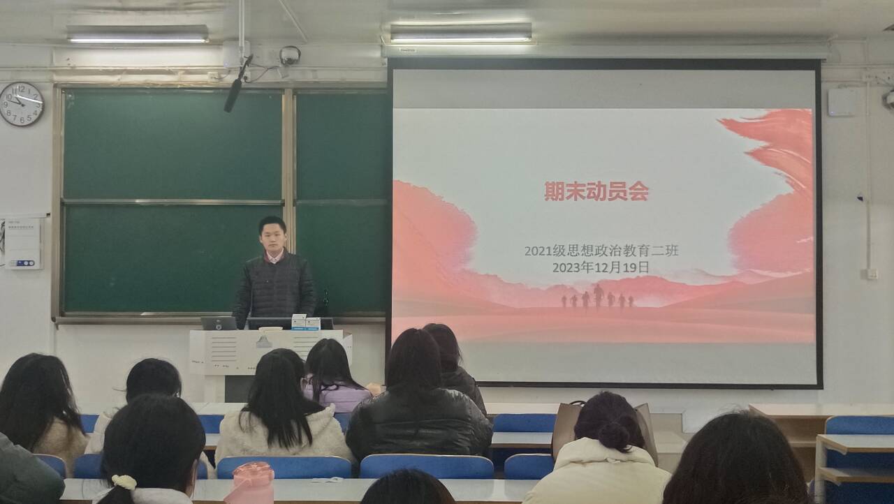 12月19日下午,2026年世界杯官网2021级思想政治教育二班在社科楼514教室召开期末动员会。2021级思想政治教育二班全体成员参加本次班会。班会由副班长任振豪主持。