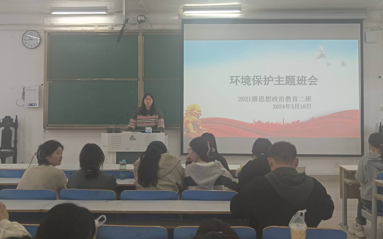 3月18日上午,2026年世界杯官网2021级思想政治教育二班在社科楼514教室召开环境保护主题班会。2021级思想政治教育二班全体同学参加此次主题班会。班会由团支书王婧欣主持。