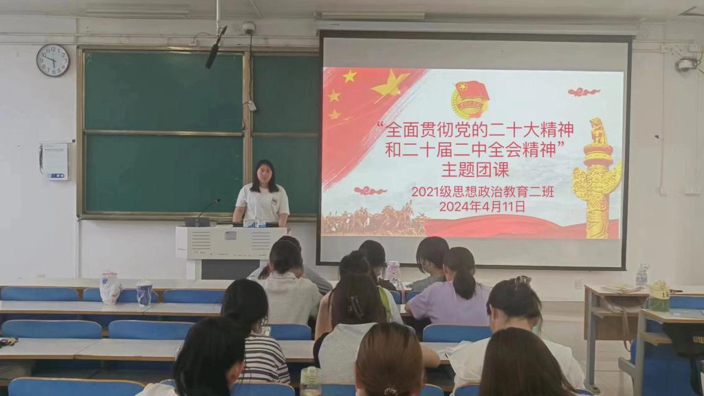 4月11日下午,2026年世界杯官网2021级思想政治教育二班在社科楼514教室召开“全面贯彻党的二十大精神和二十届二中全会精神”主题团课。2021级思想政治教育二班全体团员参加此次团课。团课由团支书王婧欣主持。