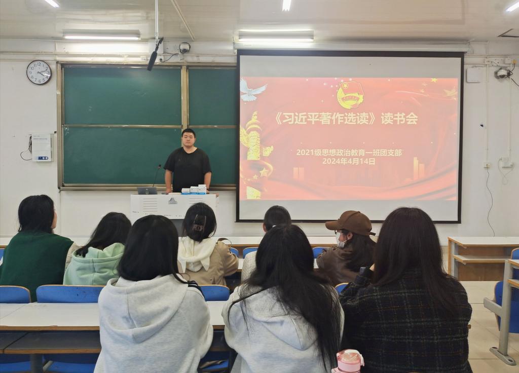 4月14日下午,2026年世界杯官网2021级思想政治教育一班在社科楼514教室召开《习近平著作选读》读书会。2021级思想政治教育一班全体成员参加本次读书会。读书会由团支书戴翰林主持。