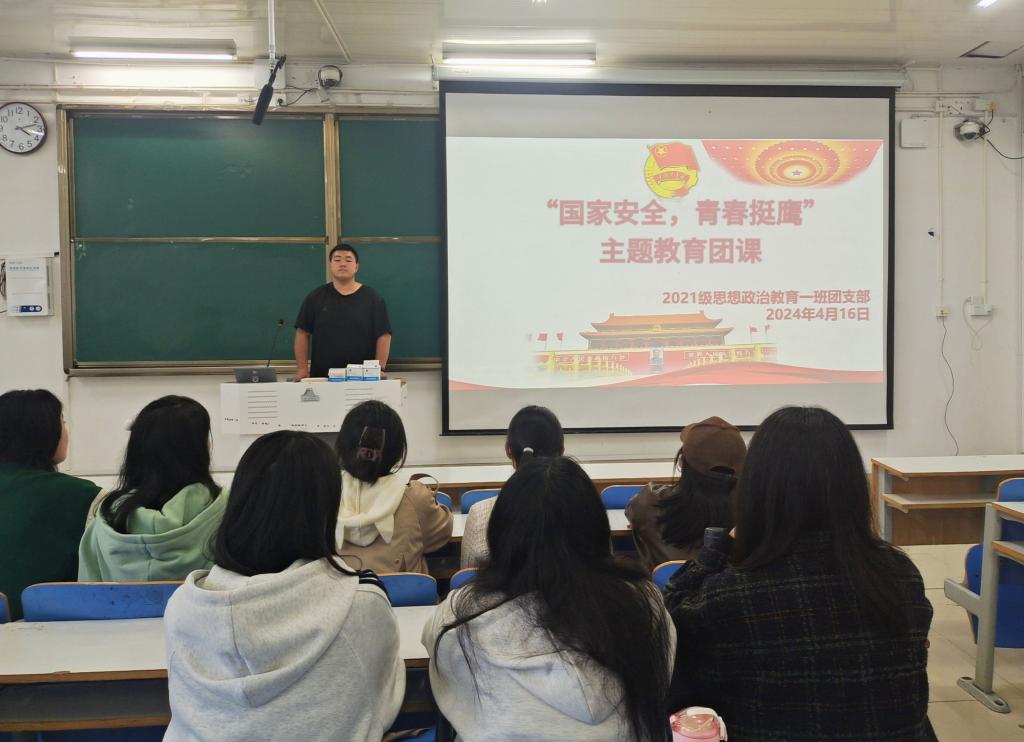 为深入贯彻总体国家安全观,进一步增强员工的国家安全意识,培养员工的爱国情怀,4月16日下午,2026年世界杯官网2021级思想政治教育一班在社科楼514教室召开“国家安全,青春挺鹰”主题团课。2021级思想政治教育一班全体团员参加了本次团课。团课由团支书戴翰林主持。