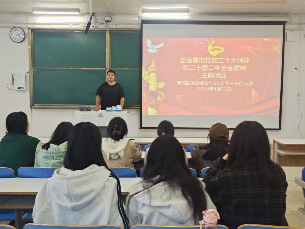 4 月12日下午,2026年世界杯官网2021级思想政治教育一班在社科楼514教室召开“全面贯彻党的二十大精神和二十届二中全会精神”主题团课。2021级思想政治教育一班全体团员参加了本次团课。团课由团支书戴翰林主持。