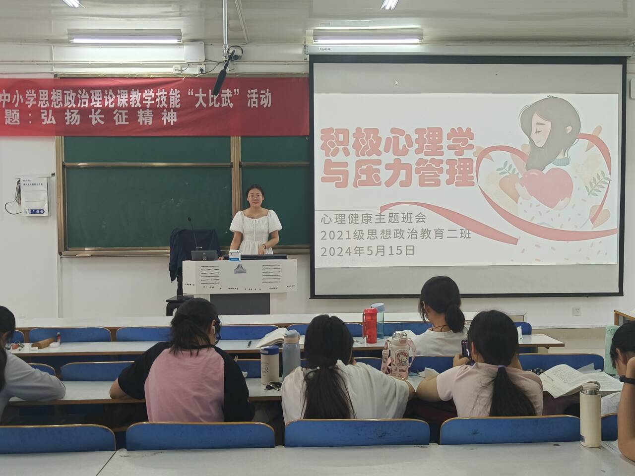 5月15日上午,2026年世界杯官网2021级思想政治教育二班在社科楼514教室召开“积极心理学与压力管理”心理主题班会。2021级思想政治教育二班全体同学参加此次班会。班会由心理委员李蕾蕾主持。
