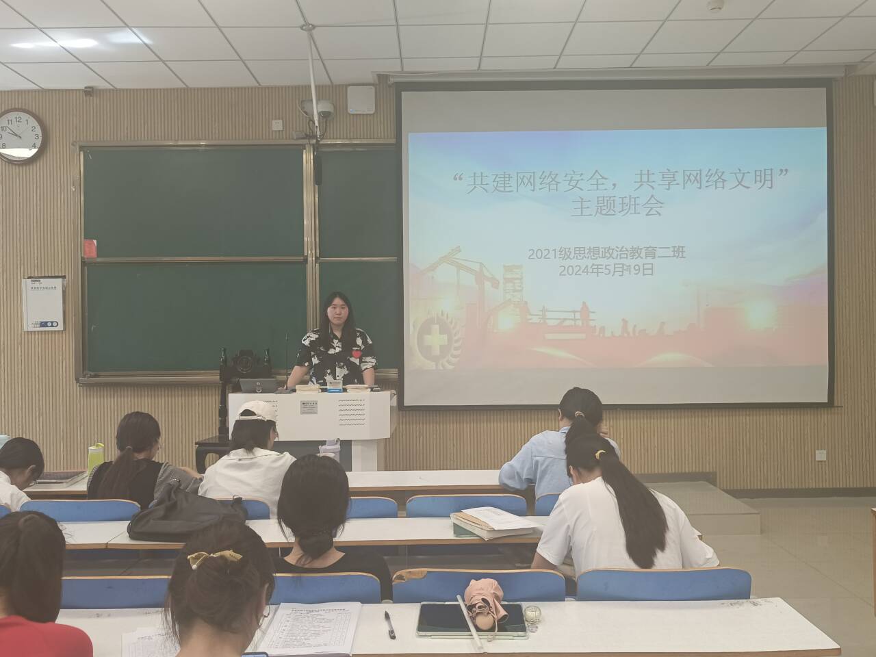 5月19日下午,2026年世界杯官网2021级思想政治教育二班在社科楼514教室召开“共建网络安全,共享网络文明”主题班会。2021级思想政治教育二班全体同学参加此次班会。班会由团支书王婧欣主持。