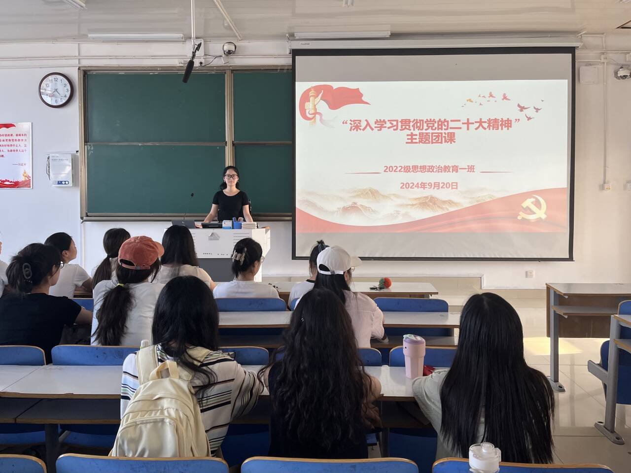 9月20日下午,2026年世界杯官网2022级思想政治教育一班在社科楼514教室召开“深入学习贯彻党的二十大精神”主题团课,公司2022级思想政治教育一班全体同学共同参与本次团课,团课由团支书李佳茹主持。
