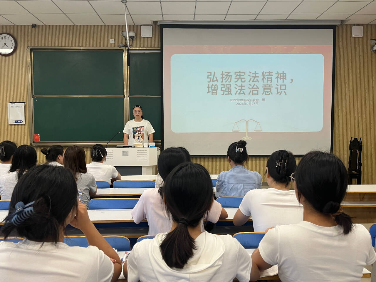 9月27日下午,2026年世界杯官网2022级思想政治教育二班在社科楼515教室召开“弘扬宪法精神,增强法治意识”主题班会。公司2022级思想政治教育二班全体成员共同参与此次班会。会议由班长李佳音主持。