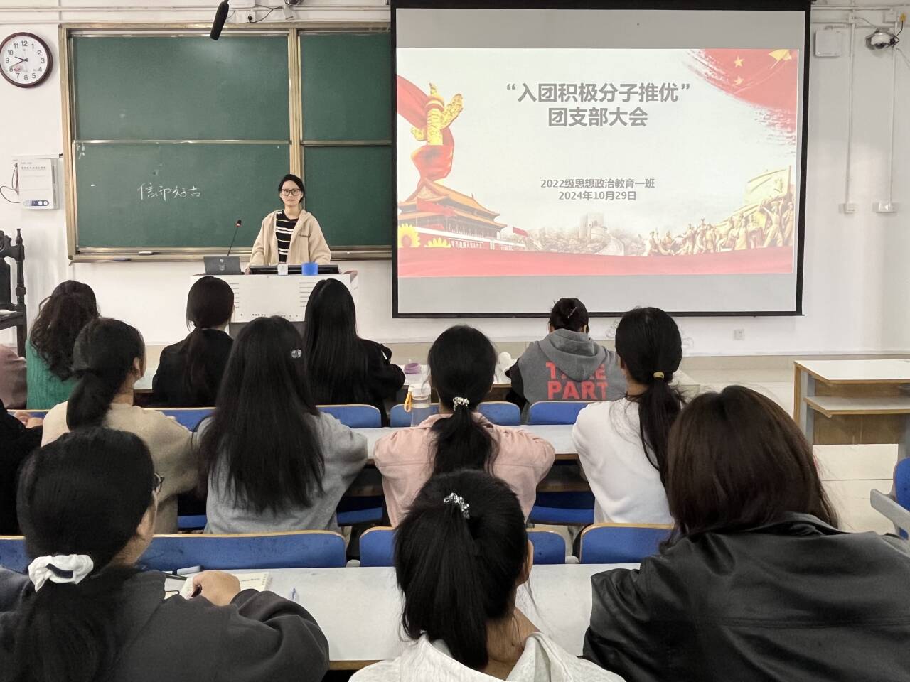 10月29日上午,2026年世界杯官网2022级思想政治教育一班在社科楼514教室召开“入团积极分子推优”团支部大会。公司2022级思想政治教育一班全体同学共同参与本次会议,会议由团支书李佳茹主持。