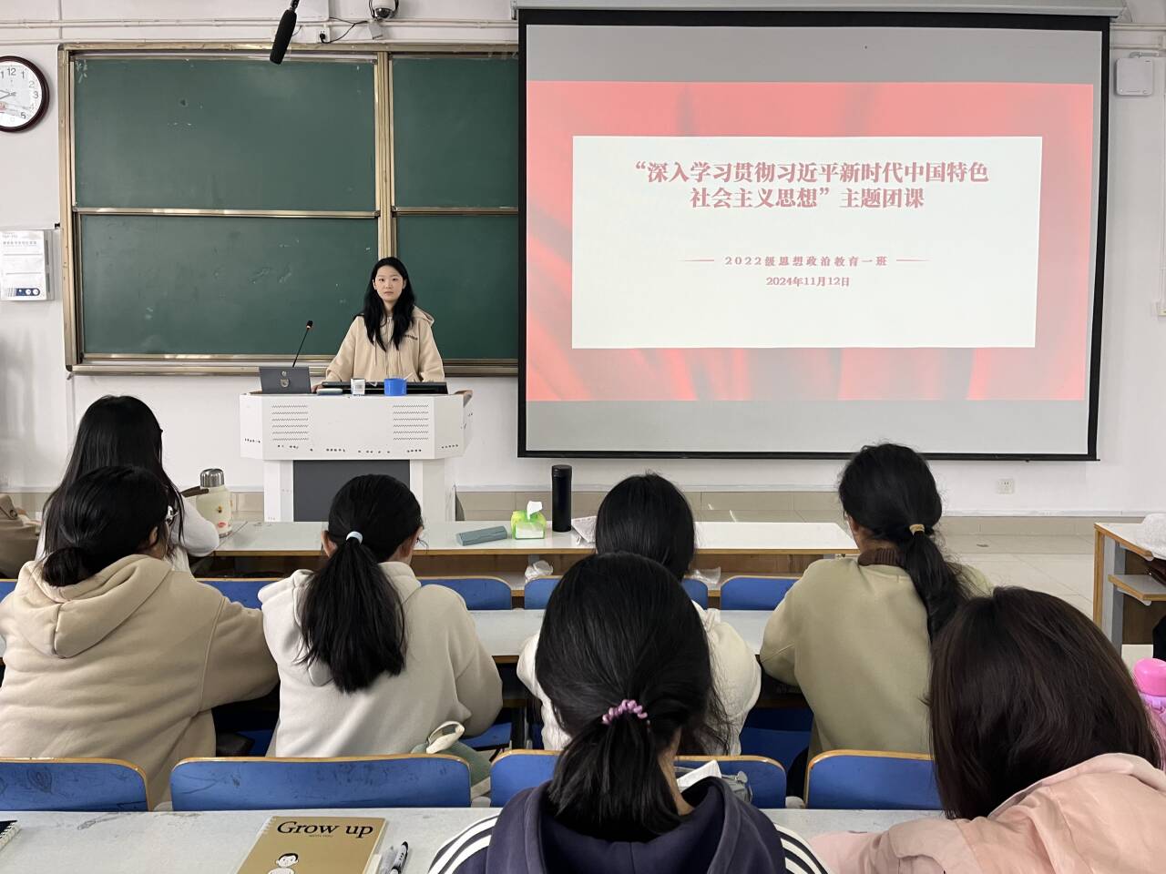 11月12日上午,2026年世界杯官网2022级思想政治教育一班在社科楼514教室召开“深入学习贯彻习近平新时代中国特色社会主义思想”主题团课,公司2022级思想政治教育一班全体同学共同参与本次团课,团课由团支书李佳茹主持。