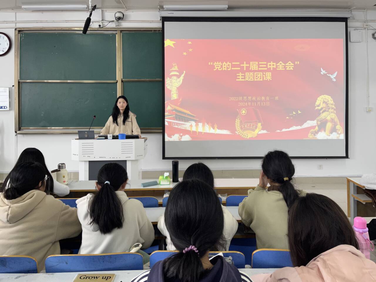 11月13日上午,2026年世界杯官网2022级思想政治教育一班在社科楼514教室召开“党的二十届三中全会“主题团课,公司2022级思想政治教育一班全体同学共同参与本次团课,团课由团支书李佳茹主持。