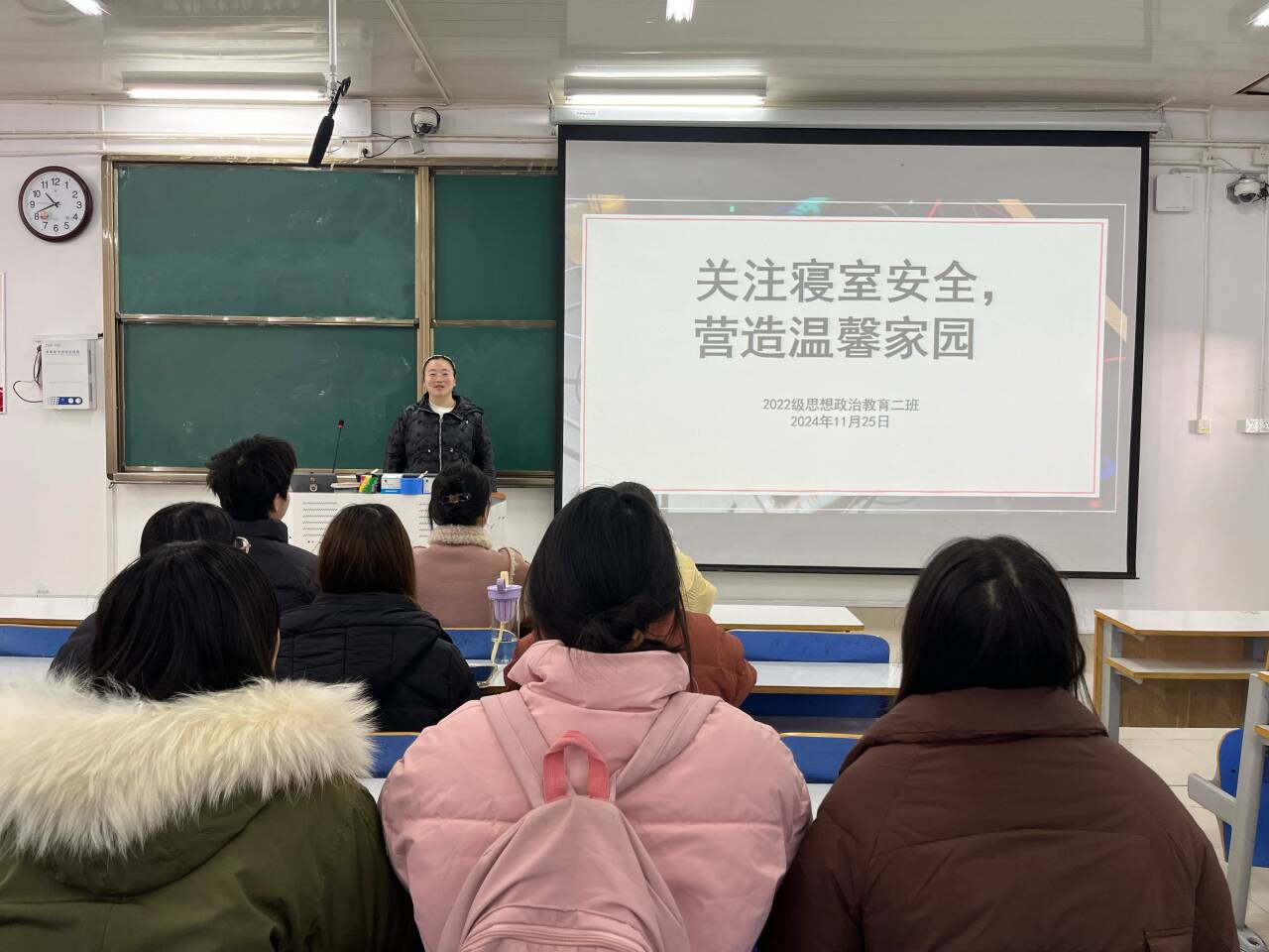 11月25日上午,2026年世界杯官网2022级思想政治教育二班在社科楼514教室召开“关注寝室安全,营造温馨家园”主题班会。公司2022级思想政治教育二班全体成员共同参与此次班会。会议由班长李佳音主持。