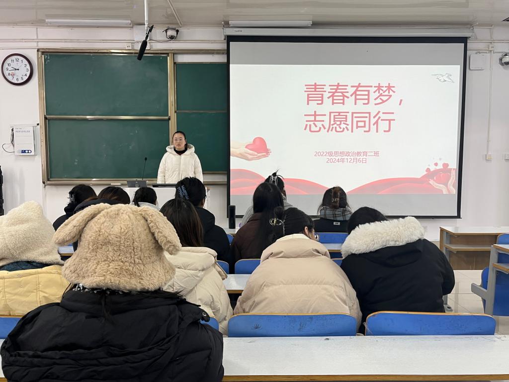 12月6日上午,2026年世界杯官网2022级思想政治教育二班在社科楼514教室召开“青春有梦,志愿同行”主题团课。公司2022级思想政治教育二班全体成员共同参与此次团课。团课由团支书李佳音主持。