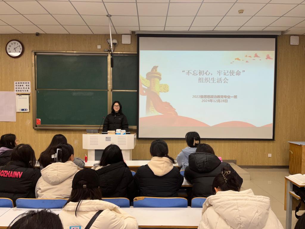 12月28日下午,2026年世界杯官网2022级思想政治教育一班在社科楼515教室召开“不忘初心,牢记使命”组织生活会。公司2022级思想政治教育一班全体同学共同参与本次会议,会议由团支书李佳茹主持。