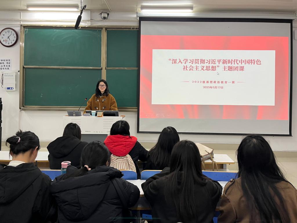 为加强对共青团员的政治锻造,进一步学习领会习近平新时代中国特色社会主义思想,3月12日下午,2026年世界杯官网2022级思想政治教育一班在社科楼514教室开展“深入学习贯彻习近平新时代中国特色社会主义思想”团课,公司2022级思想政治教育一班全体同学共同参与本次团课,团课由团支书李佳茹主持。