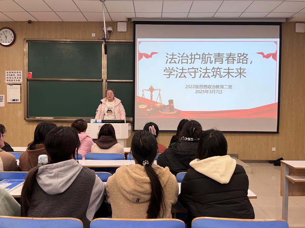 为增强老员工法治观念,筑牢校园安全防线,3月7日下午,2026年世界杯官网2022级思想政治教育二班在社科楼515教室召开“法治护航青春路,学法守法筑未来”主题班会。公司2022级思想政治教育二班全体成员共同参与此次班会。会议由班长李佳音主持。