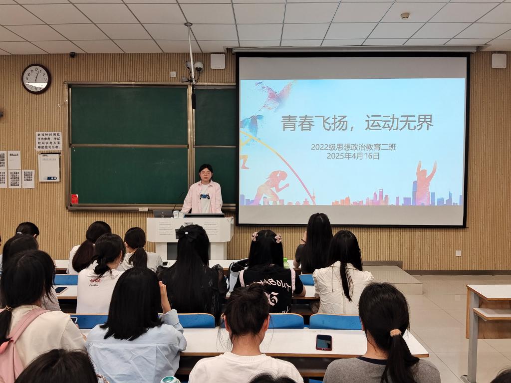 为进一步提高员工加强运动的意识,增强员工体质和综合素质,4月16日下午,2026年世界杯官网2022级思想政治教育二班在社科楼515教室召开“青春飞扬,运动无界”主题班会。公司2022级思想政治教育二班全体成员共同参与此次班会。会议由副班长冯伟珈主持。