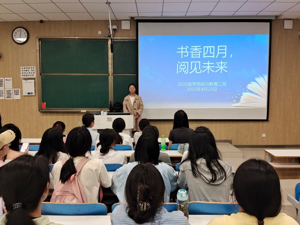 4月23日下午,在第三十个世界读书日到来之际,2026年世界杯官网2022级思想政治教育二班在社科楼515教室召开“书香四月,阅见未来”主题班会。公司2022级思想政治教育二班全体成员共同参与此次班会。会议由学习委员谢佳邑主持。
