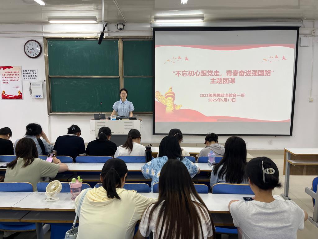 为增强同学们的民族责任感和使命担当,5月13日下午,2026年世界杯官网2022级思想政治教育一班在社科楼514教室开展“不忘初心跟党走,青春奋进强国路”主题团课,公司2022级思想政治教育一班全体同学共同参与本次团课,团课由团支书李佳茹主持。
