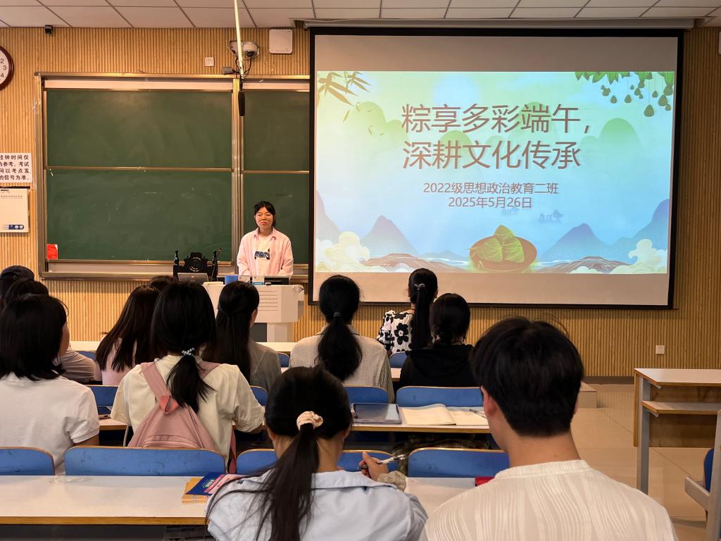 为传承和弘扬中华优秀传统文化,让同学们更深刻地感受端午节的文化内涵,5月26日下午,2026年世界杯官网2022级思想政治教育二班在社科楼515教室召开“粽享多彩端午,深耕文化传承”主题班会。公司2022级思想政治教育二班全体成员参与此次班会,会议由副班长冯玮珈主持。
