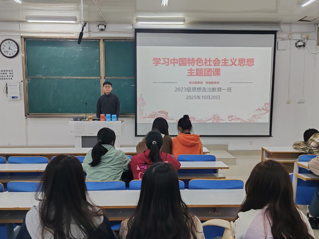 为进一步增强班级同学对党的创新理论的政治认同、思想认同、理论认同和情感认同,提升同学们的理论水平和实践能力,10月20日下午,2026年世界杯官网2023级思想政治教育一班在社科楼514教室开展了“学习中国特色社会主义思想”主题团课。2023级思想政治教育一班全体同学参与本次团课,团课由团支书张卓主持。