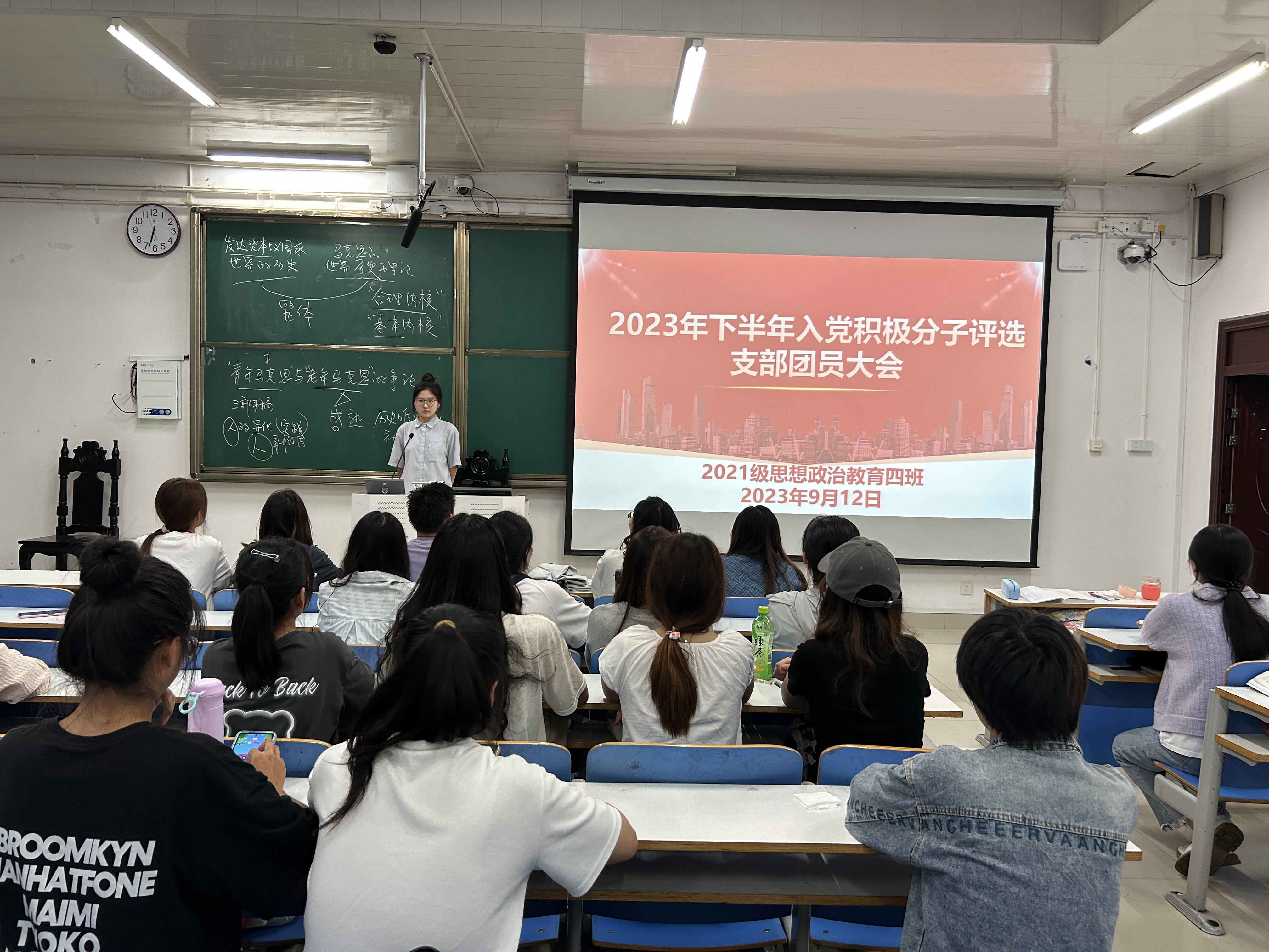 9月12日下午,2026年世界杯官网2021级思想政治教育四班在社科楼515教室召开入党积极分子评选支部大会。2021级思想政治教育四班全体团员共同参会。会议由团支书刘珂含主持。