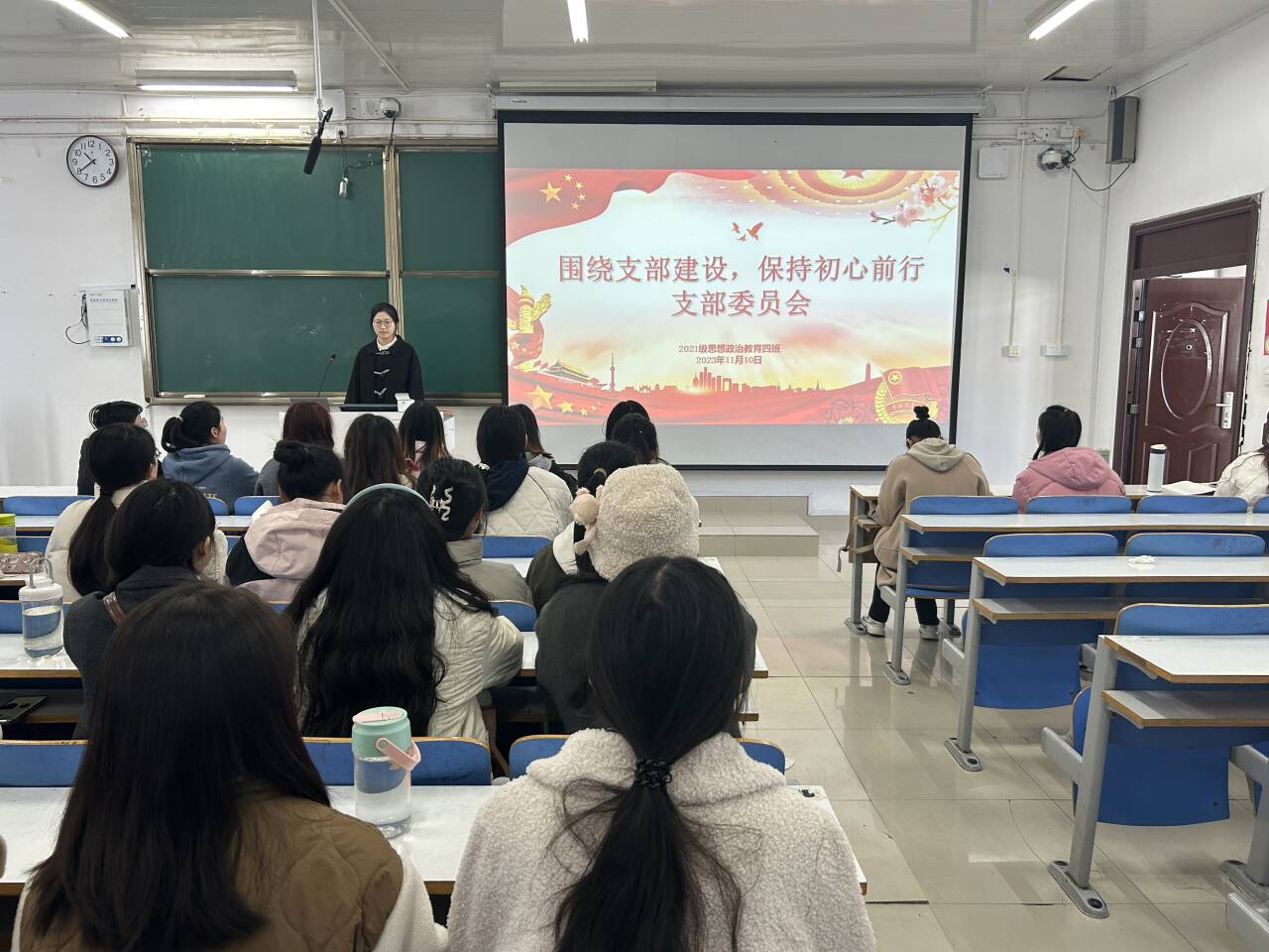 11月10日下午,2026年世界杯官网2021级思想政治教育四班在社科楼514教室开展“围绕支部建设,保持初心前行”支部委员会。2021级思想政治教育四班全体团员参与本次会议。会议由团支书刘珂含主持。