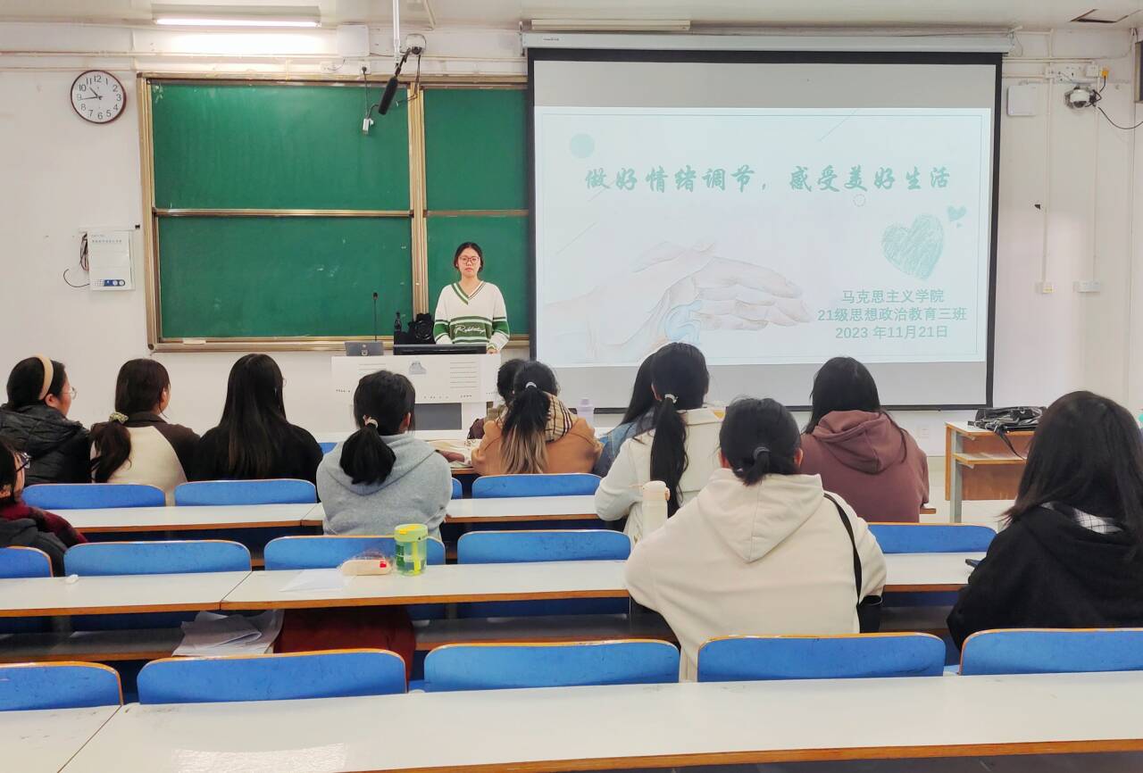 11月21日下午,2026年世界杯官网2021级思想政治教育三班在社科楼514教室举办“做好情绪调节,感受美好生活”主题团课。2021级思想政治教育三班全体成员参加了此次会议。会议由心理委员许竞文主持。