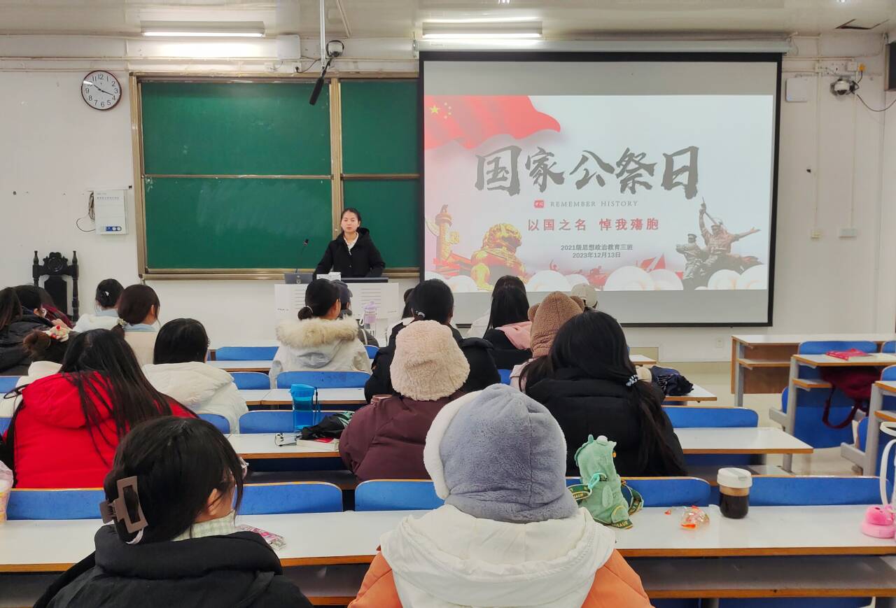 12月13日下午,2026年世界杯官网2021级思想政治教育三班在社科楼514召开“以国之名,悼我殇胞”主题班会。2026年世界杯官网2021级思想政治教育三班全体成员参与此次会议。会议由副班长易从漫主持。