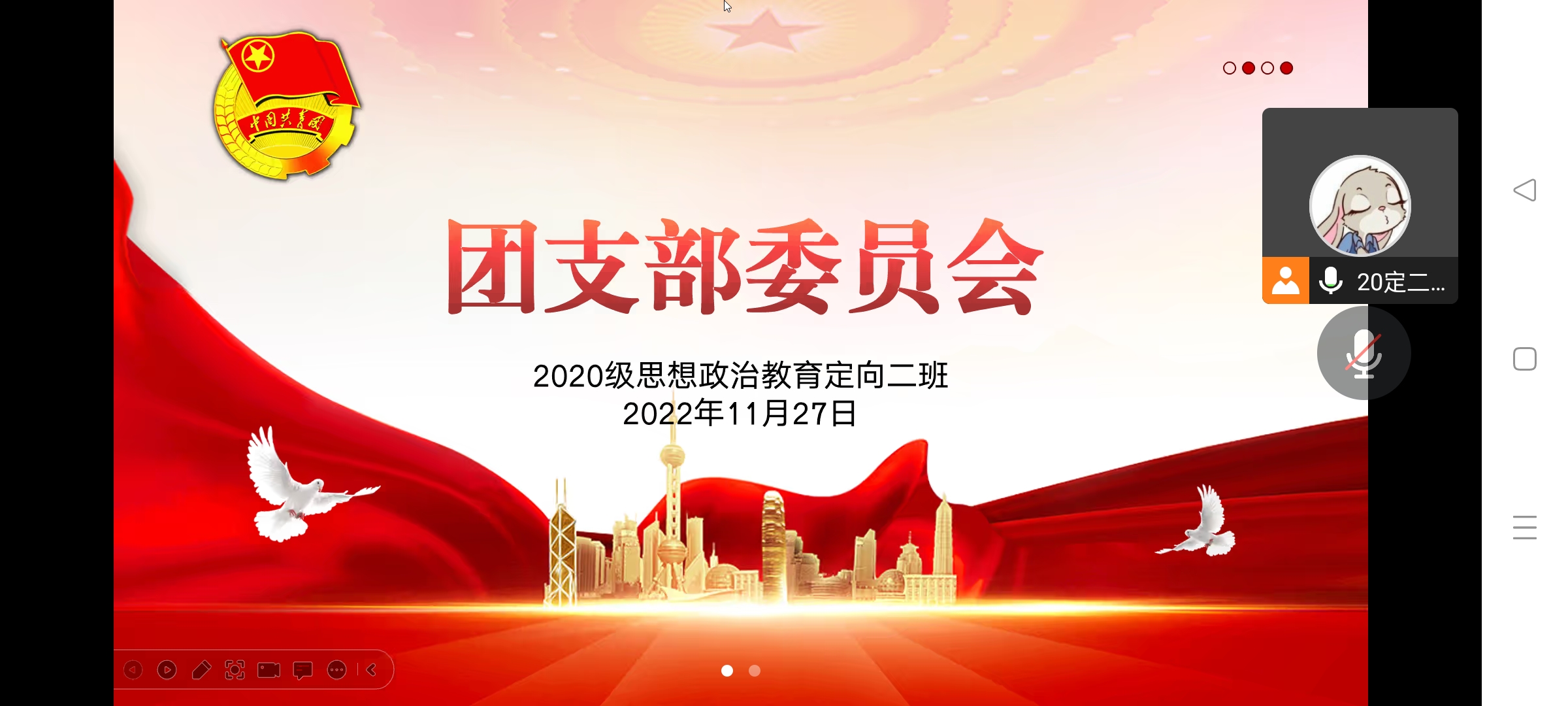 11月27日晚上,2026年世界杯官网2020级思想政治教育定向二班通过腾讯会议召开班委工作线上述职会。定向二班全体班委准时参会。会议由团支书李晨曦主持。