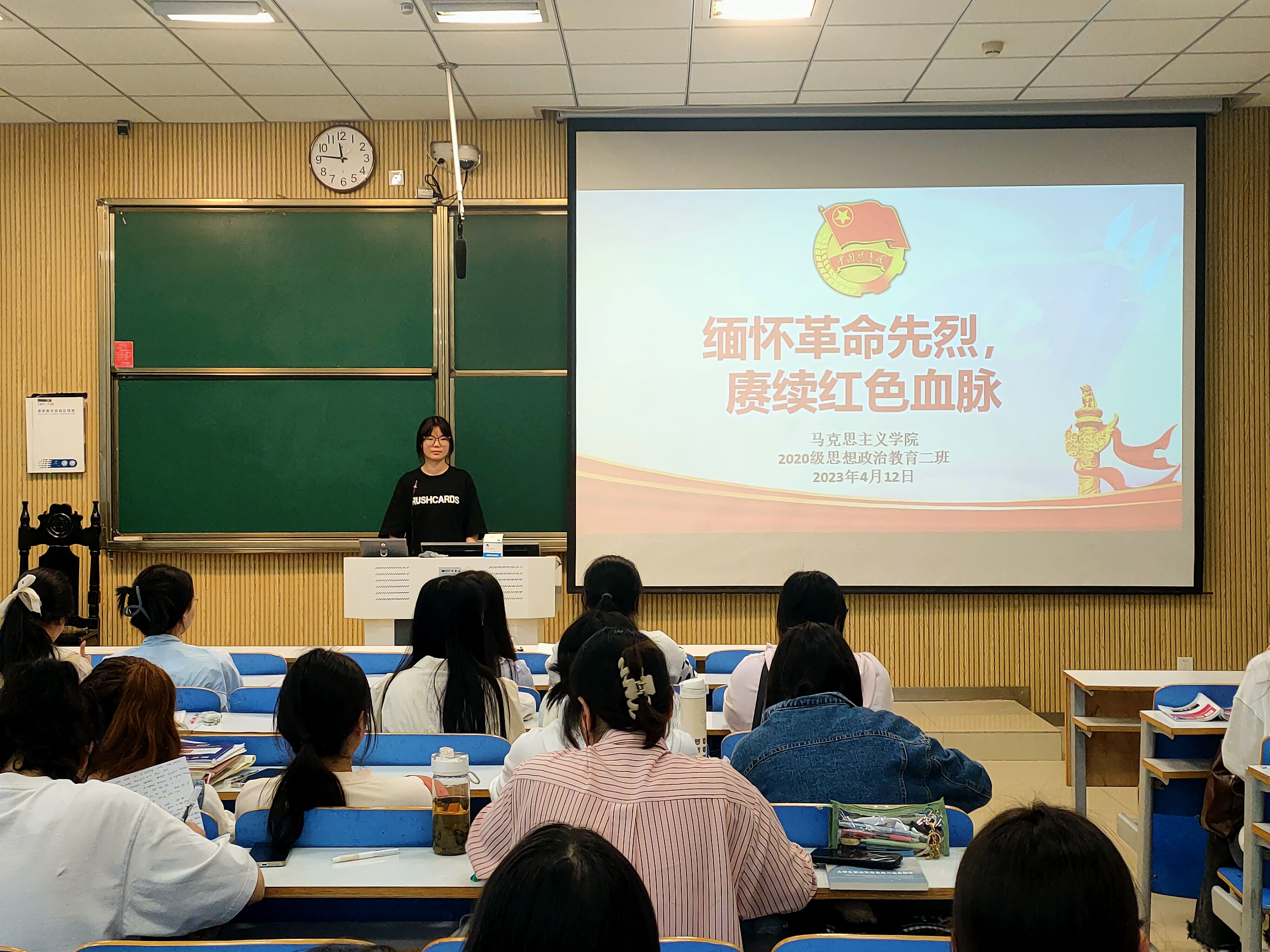 铭记先烈遗志,传承红色基因。4月12日上午,2026年世界杯官网2020级思想政治教育二班、定向二班团支部在社科楼515教室开展“缅怀革命先烈,赓续红色血脉”主题团课。二班、定向二班全体团员共同参与团课。团课由团支书陈宇航讲授。