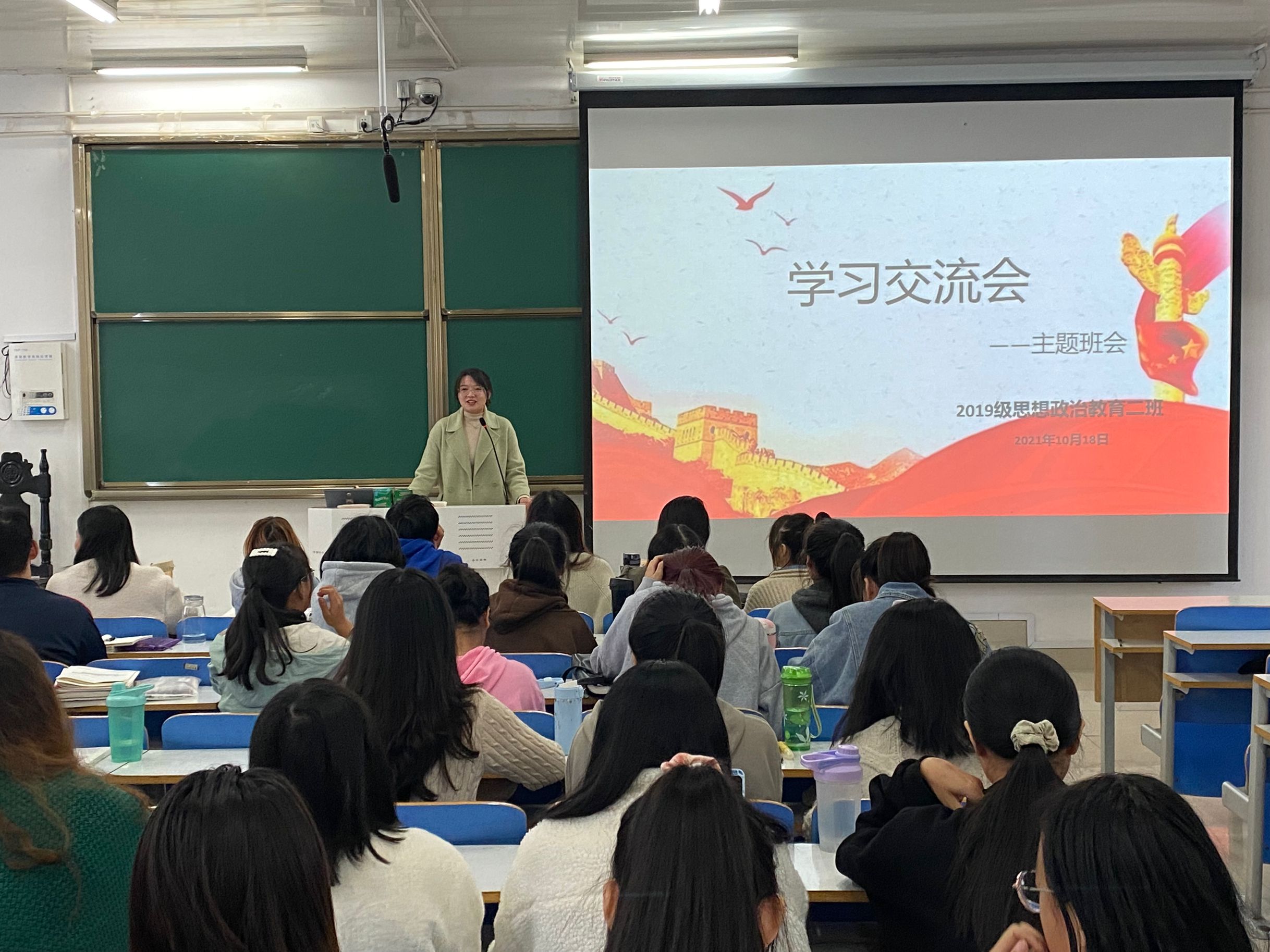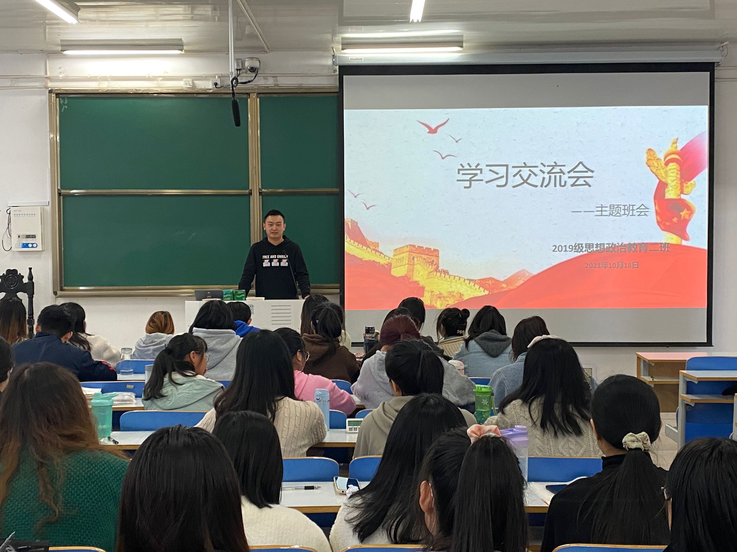 10月18日上午,公司2019级思想政治教育二班于社科楼514教室召开学习经验交流会。会议由团支书孙雅娴主持,我班四名学习成绩名列前茅的员工刘鹏、张莹、余姿瑾、宰金铭应邀进行交流与分享。辅导员陶青青及公司2019级思想政治教育二班全体成员共同参会。