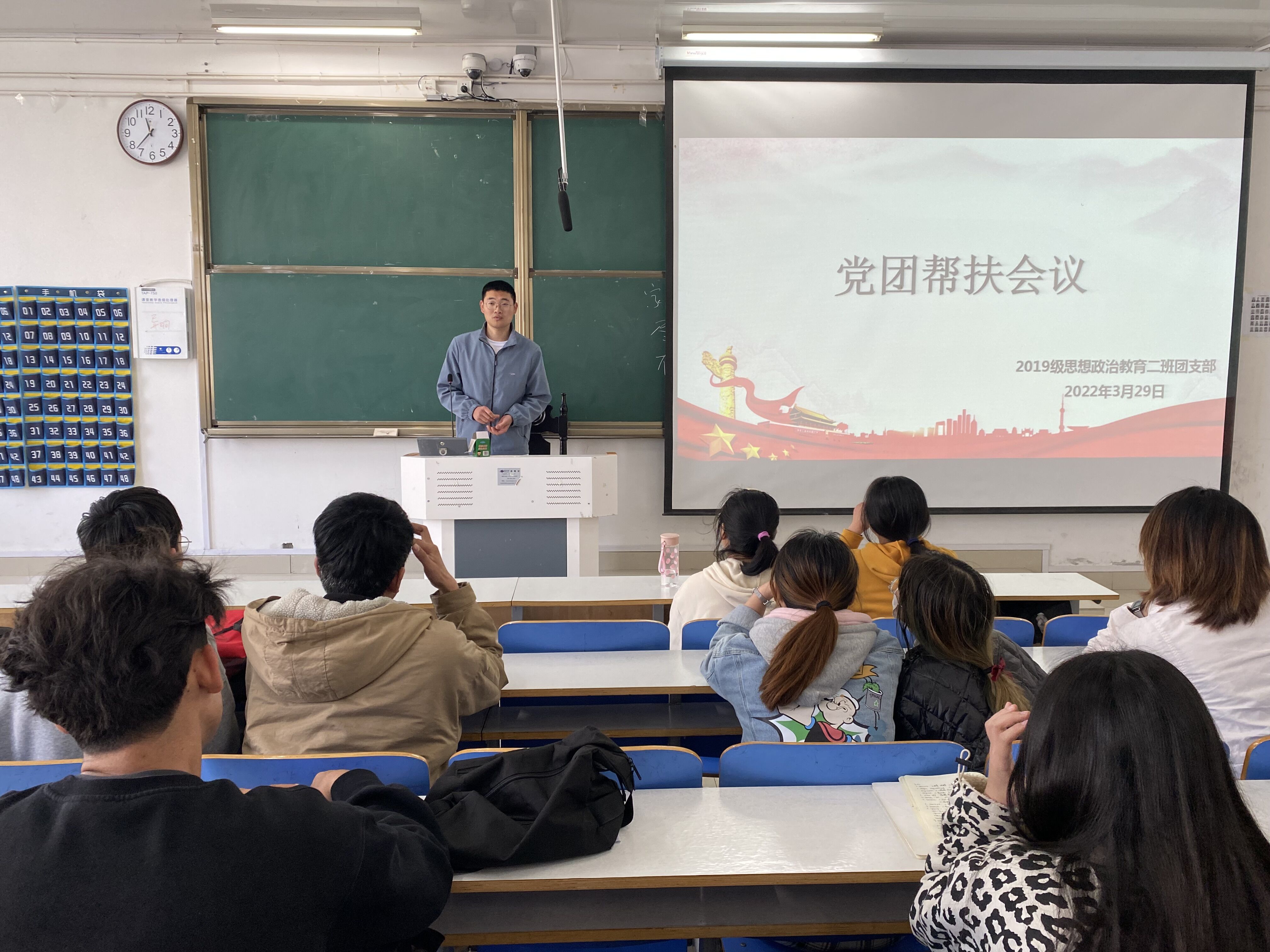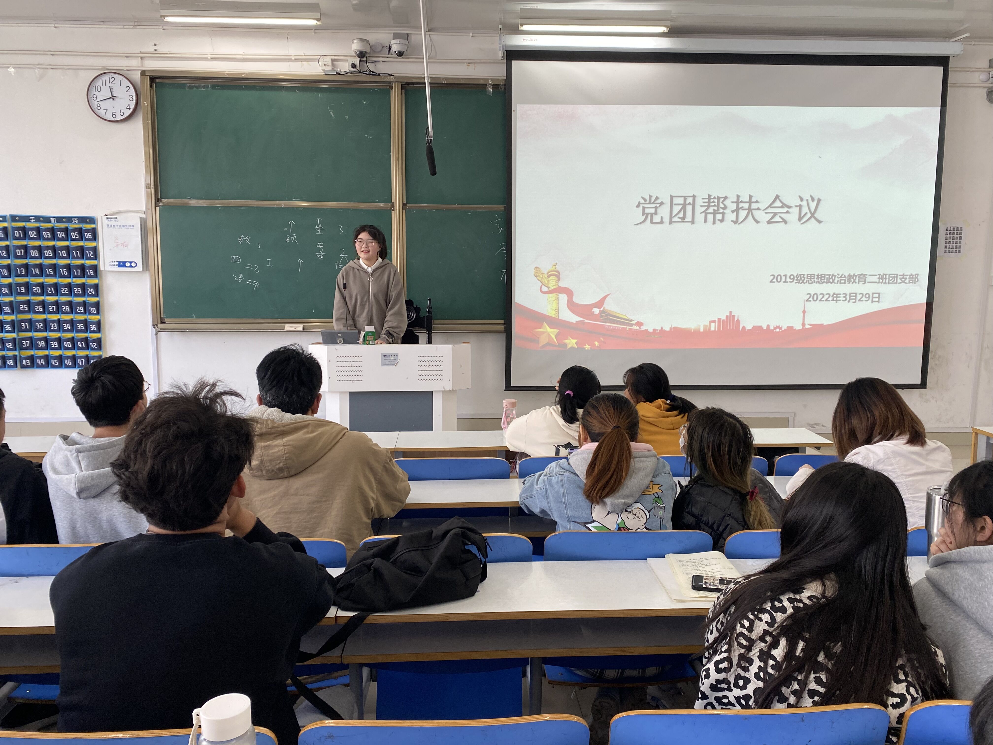 3月29日上午,2026年世界杯官网2019级思想政治教育二班于社科楼516教室召开党团帮扶会议。公司党员杨康、王文慧及2019级思想政治教育二班全体成员共同参会。会议由团支书孙雅娴主持。