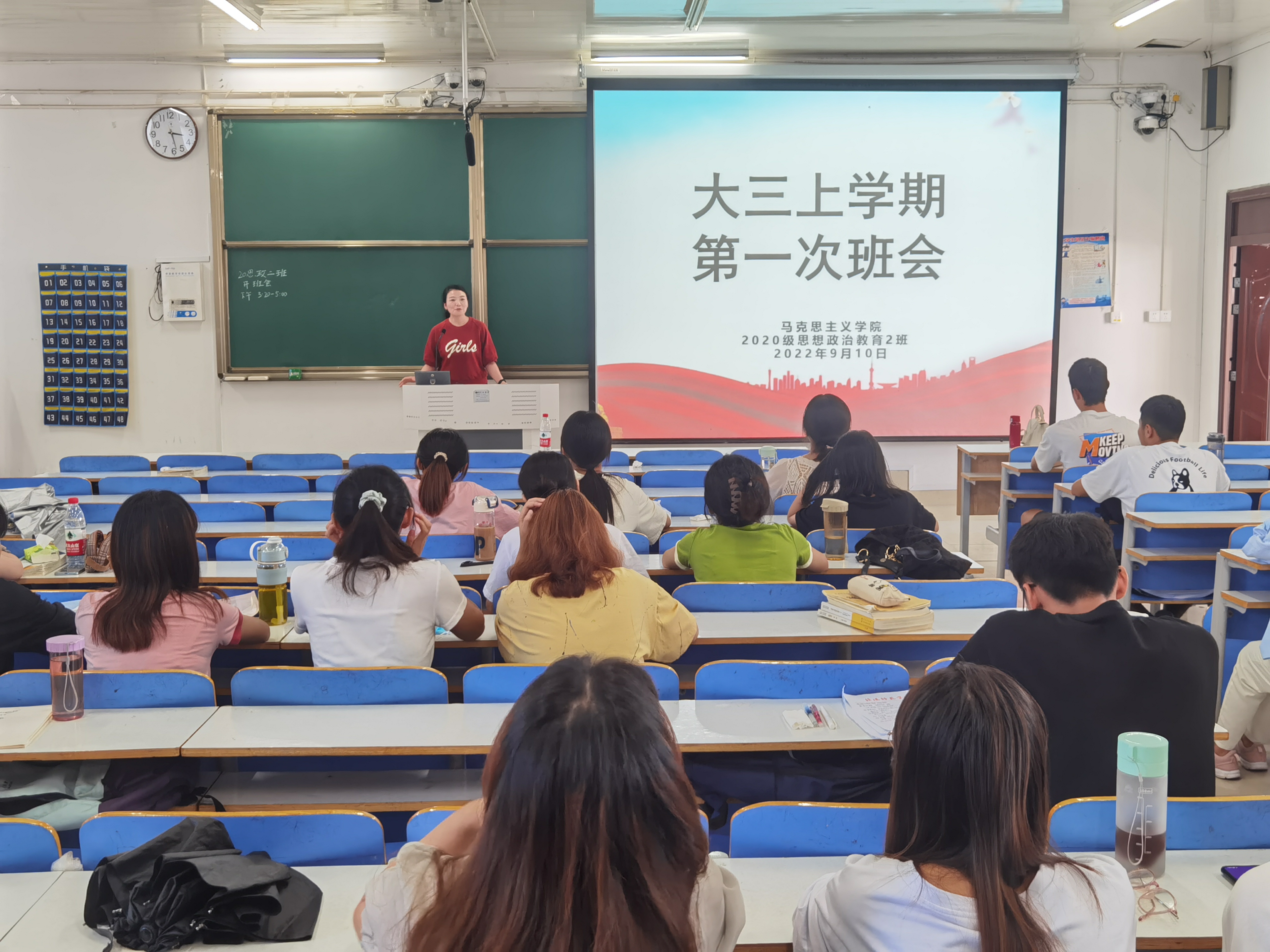 9月10日下午,2026年世界杯官网2020级思想政治教育二班、定向二班在社科楼514教室召开新学期第一次班会。二班、定向二班全体同学参与此次班会。辅导员陶青青出席并主持班会。
