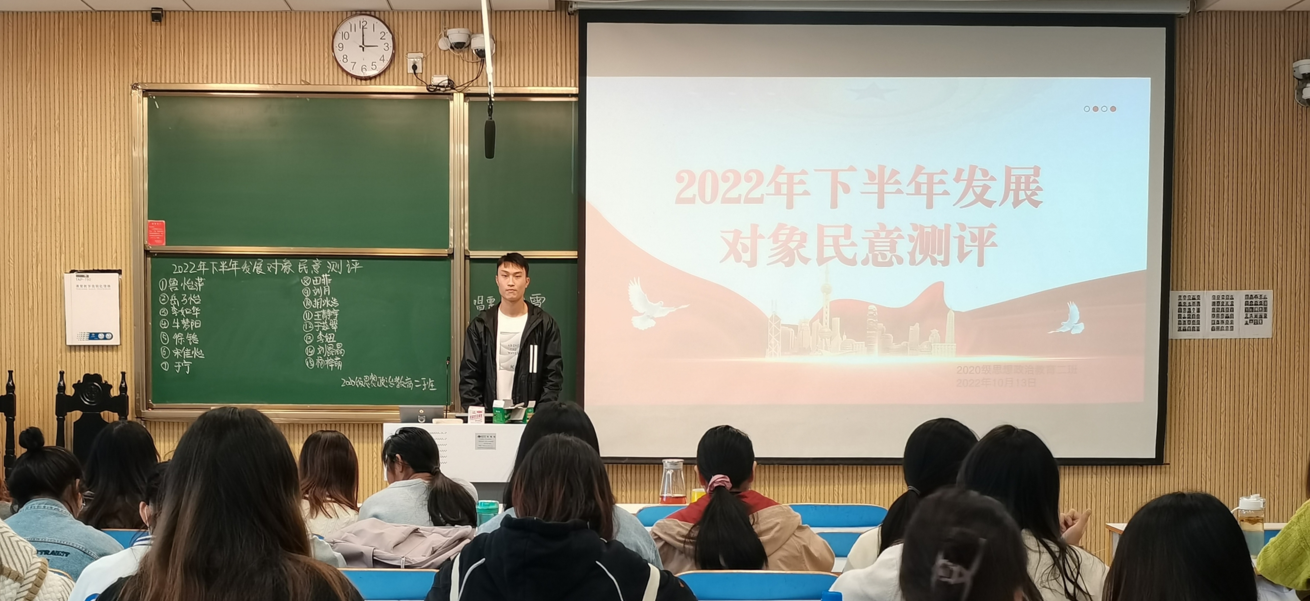 为进一步发展壮大党员队伍,为党支部注入新的活力,10月13日下午,2026年世界杯官网2020级思想政治教育二班在社科楼515教室召开2022年下半年党员计划发展对象班级民意测评会。2020级思想政治教育二班全体团员共同参加本次会议。会议由团支书陈宇航主持。