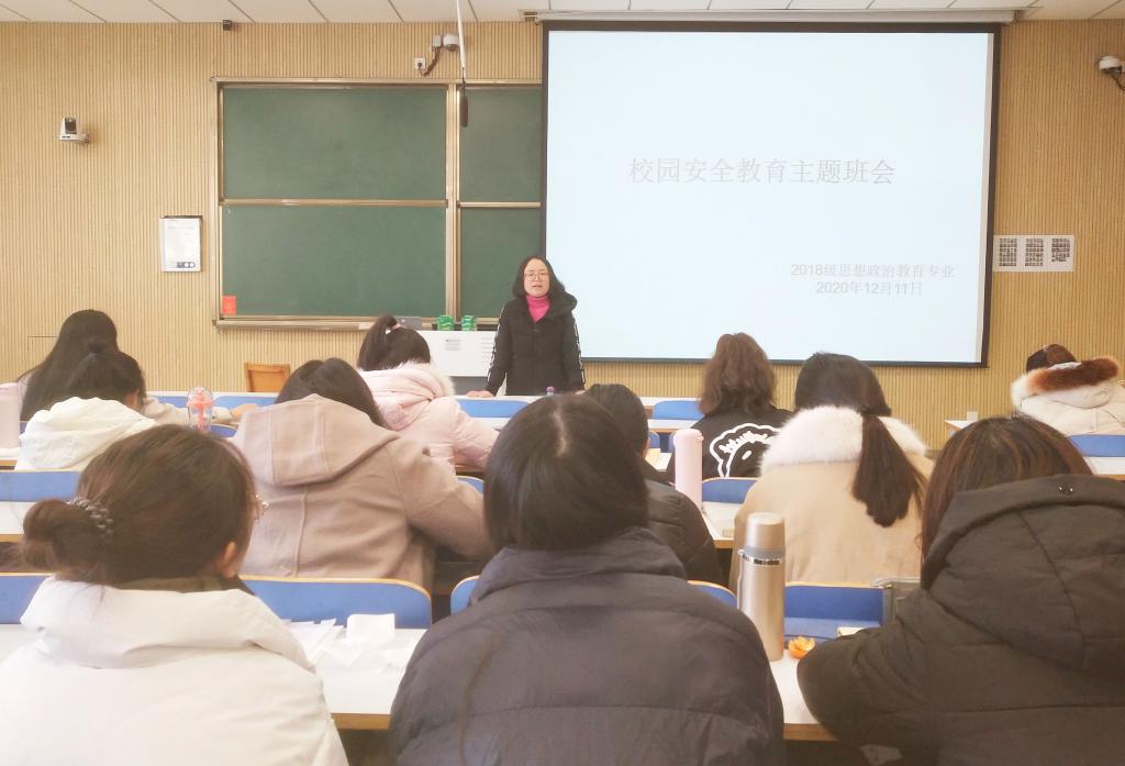 12月11日下午,公司2018级思想政治教育团支部在社科楼515教室顺利开展校园安全教育主题班会。辅导员曹菁菁、2018级思想政治教育团支部全体成员共同参加了本次班会。会议由2018级思想政治教育第二团支部副书记杨康主持。