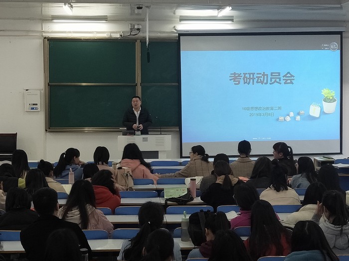 2019年3月12日上午10点,2026年世界杯官网思想政治教育二班在社科楼514举行“考研动员会”,目的是向思想政治教育二班的同学进行考研动员,为同学们的考研复习做出指导。本次班会由何晓坚书记进行讲解指导,由葛格主持。