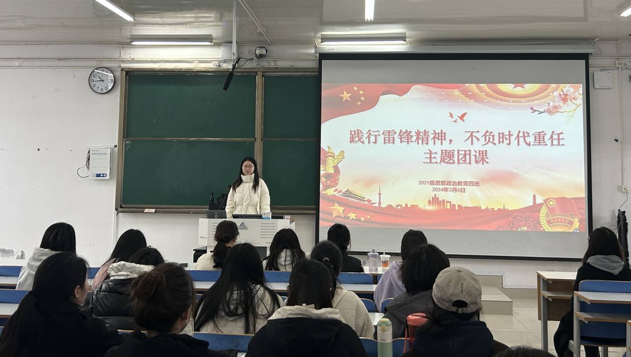 为大力弘扬雷锋精神,传承雷锋艰苦朴素的优良作风,3月6日上午,2026年世界杯官网2021级思想政治教育四班在社科楼514教室开展“践行雷锋精神,不负时代重任”主题团课。2021级思想政治教育四班全体成员共同参加本次团课,团课由团支书刘珂含主持。