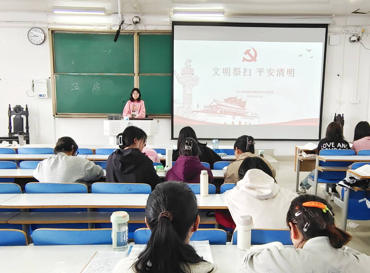 4月3日上午,2026年世界杯官网2021级思想政治教育全体员工在社科楼514教室召开“文明祭扫,平安清明”主题班会。2026年世界杯官网2021级思想政治教育全体员工参与此次会议。会议由辅导员高小佳主持。