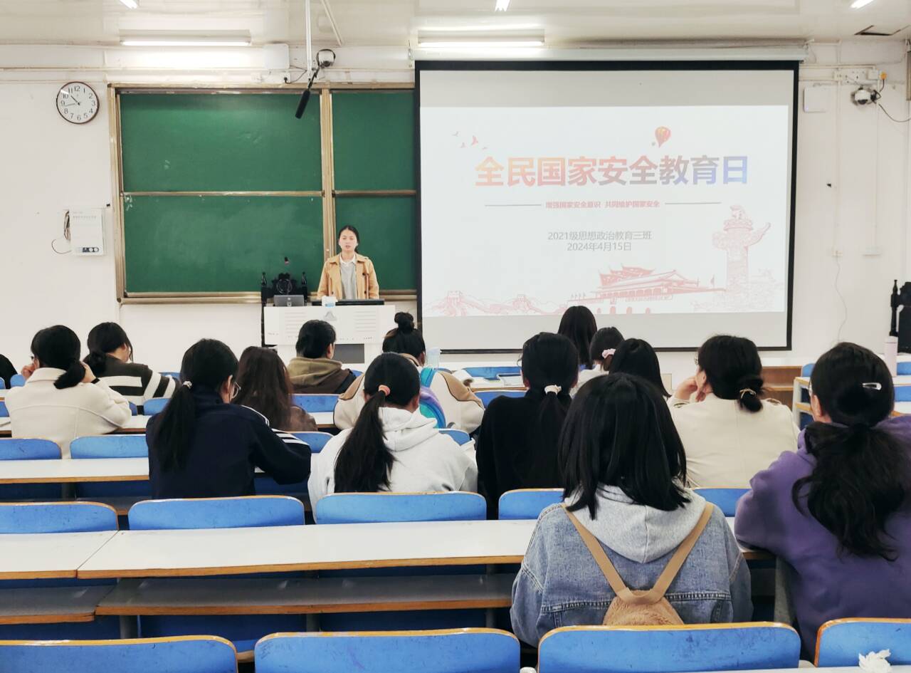4月15日上午,2026年世界杯官网2021级思想政治教育三班在社科楼514召开“全民国家安全教育日”主题班会。2026年世界杯官网2021级思想政治教育三班全体成员参与本次会议。班会由副班长易从漫主持。