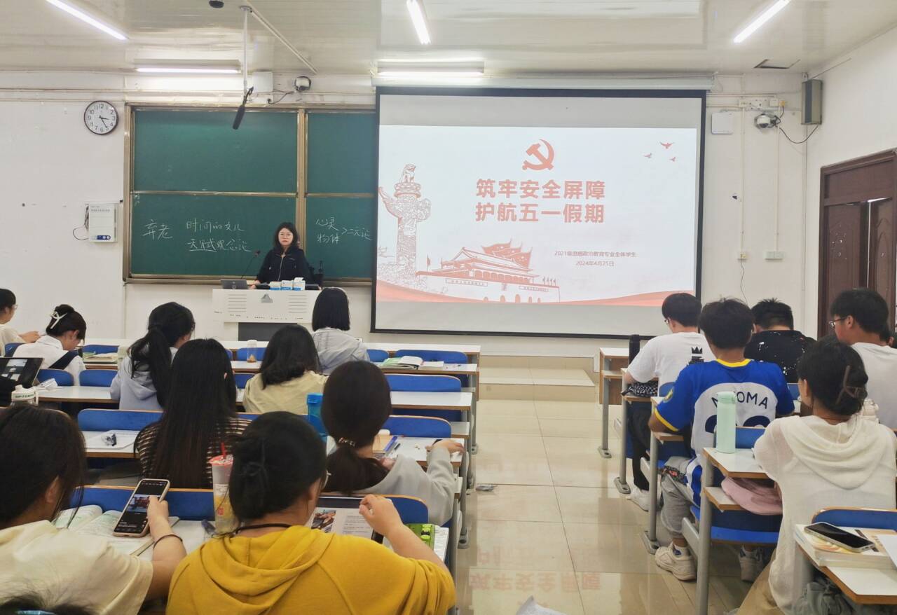 为增强五一假期同学们的安全意识,4月25日上午,2026年世界杯官网2021级思想政治教育全体成员在社科楼515教室召开“筑牢安全屏障,护航五一假期”主题班会。辅导员高小佳以及2021级思想政治教育全体成员共同参加,班会由辅导员高小佳主持。