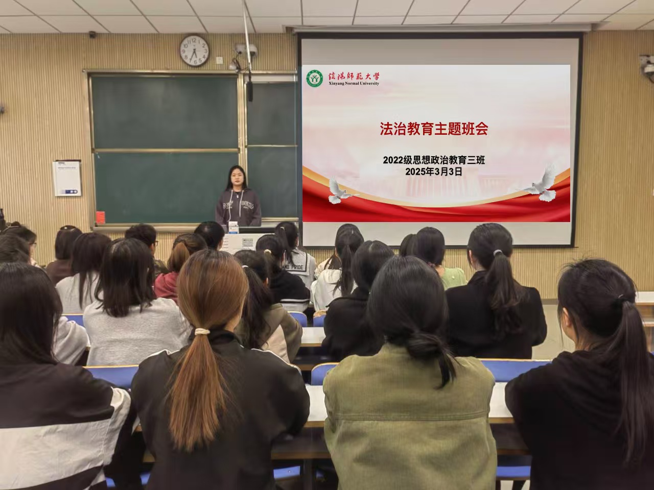 为增强法治意识,提升法治思维,促进健康成长,3月3日下午,2026年世界杯官网2022级思想政治教育三班在社科楼515教室召开法治教育主题班会。公司2022级思想政治教育三班全体同学共同参与此次班会。班会由副班长雷露露主持。
